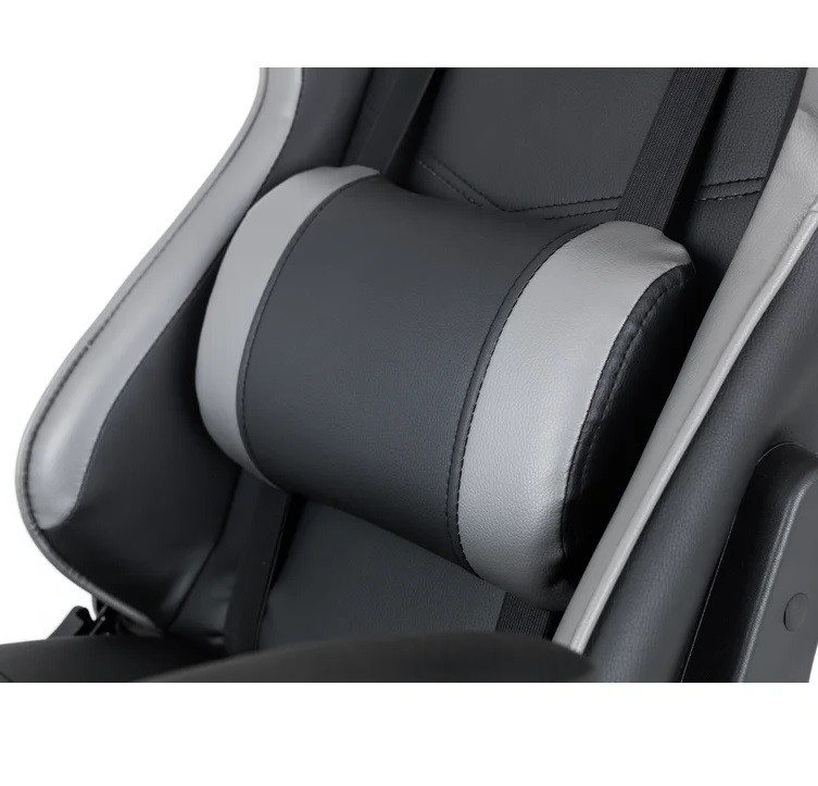 This modern gaming chair, upholstered in sleek faux leather with stylish grey accents, offers maximum comfort for long hours of gaming or studying. With built-in neck and lumbar support, you can enjoy extended sessions without discomfort.